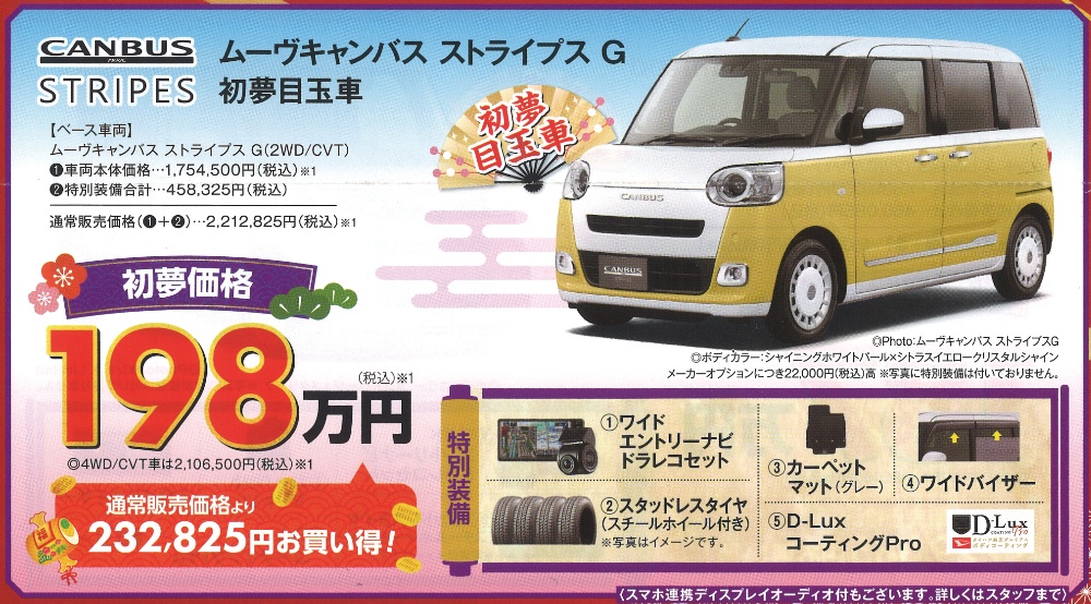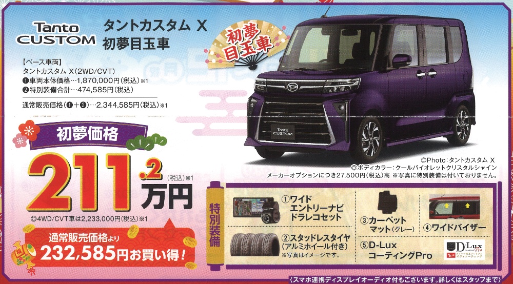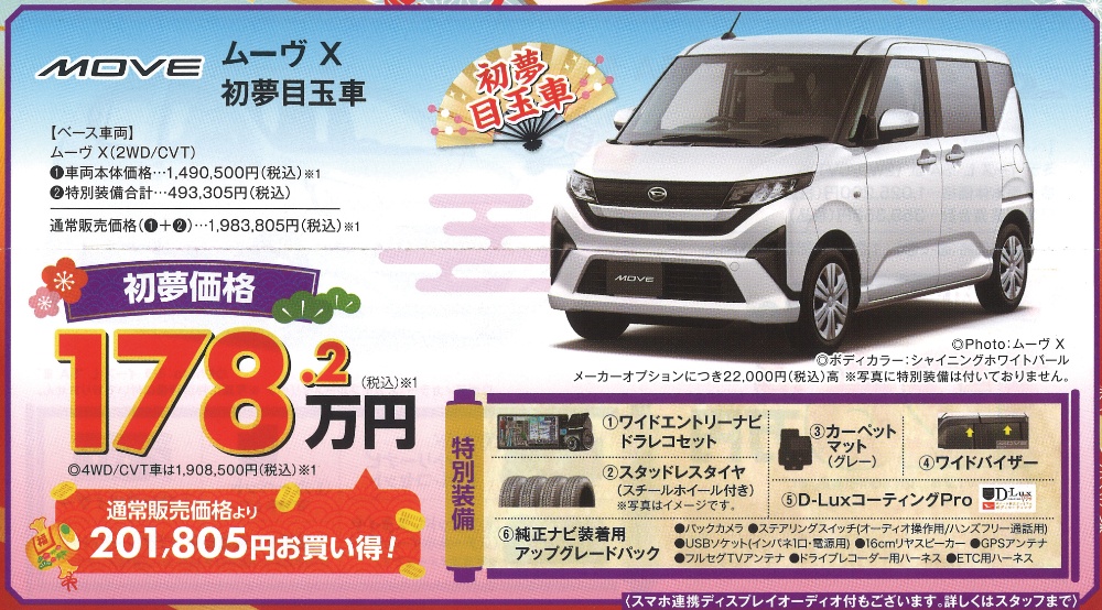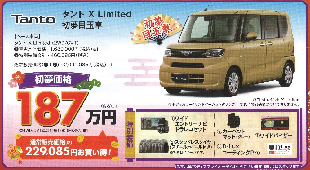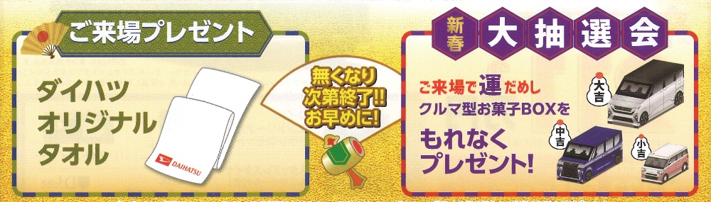 ダイハツ・トヨタ・日産・スズキ車等各種メーカーの新車注文受注可能です!各種中古車も販売しております!お気軽にご相談ください。